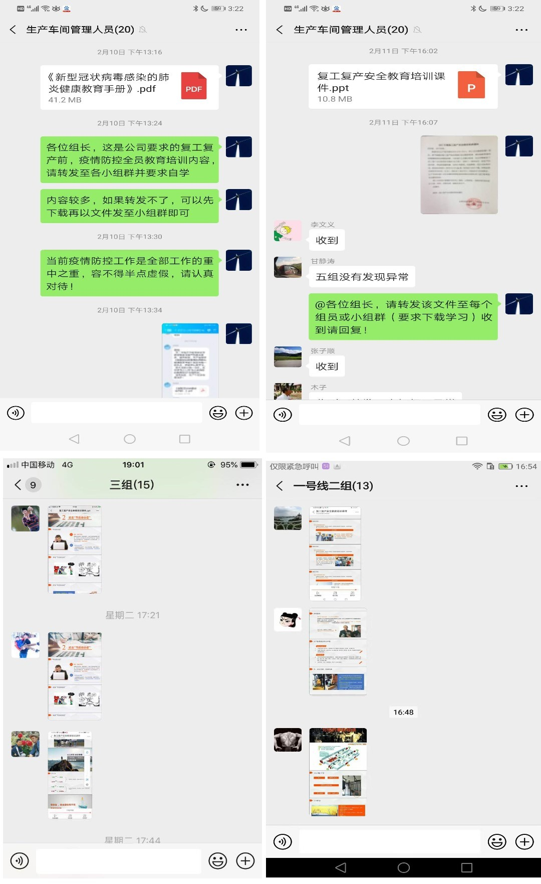 從員工返程摸排登記到進入車間的健康排查登記;從“疫情防控全員教育培訓”到“節后復工復產全員安全教育培訓”(利用網絡平臺);從每位員工的口罩發放到車間無死角的清潔消毒;從鍋爐點火供汽到水、油相的升溫配制;從原輔材料的備料轉運到一件件合格成品裝車入庫,不違疫時抓生產,一幅幅復工復產的圖景井然有序地徐徐展開......。