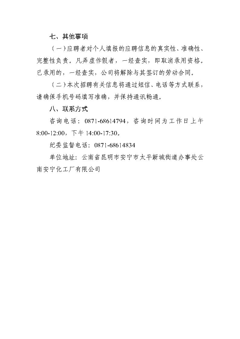 上一篇: 云南安寧化工廠有限公司招聘公告
