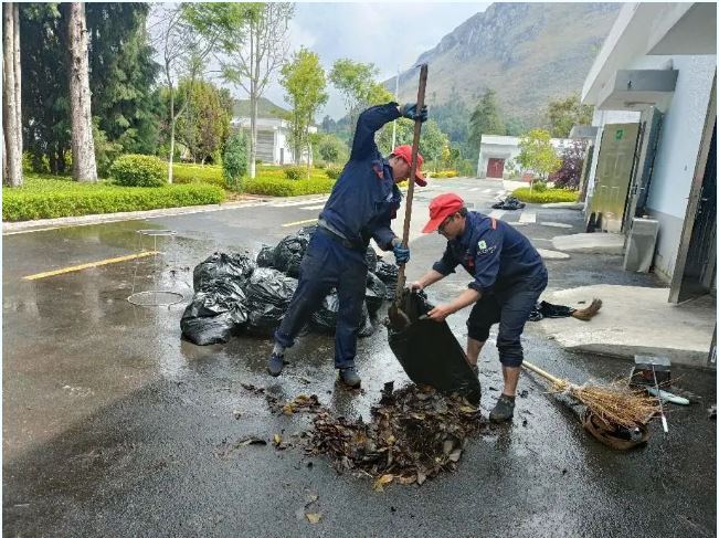 公司組織清掃隊伍對屋頂的落葉進行全面清掃,消除了因落葉堵塞排水口而引發的屋頂積水安全隱患,并對發現的管道堵塞點進行清理疏通,確保屋頂的排水系統暢通。同時清理了溝道內的垃圾和淤泥,確保溝道無阻。