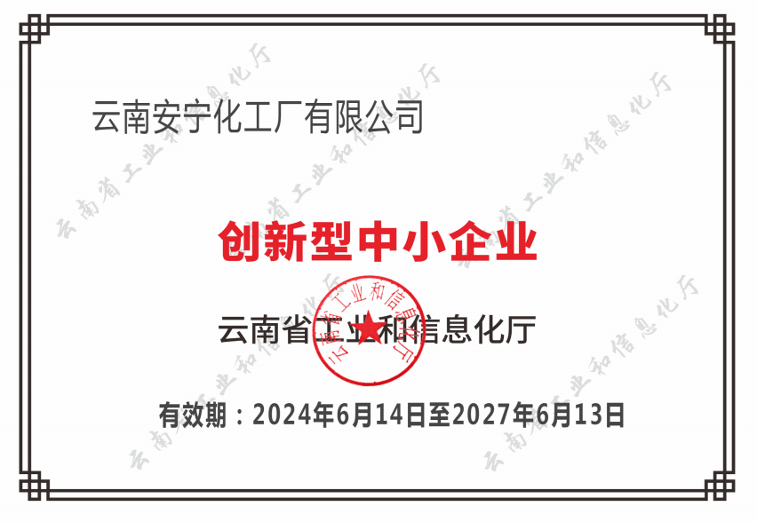 經逐級推薦、專家復核、網上公示等程序,云南省工業和信息化廳于2024年6月13日確定了2024年度創新型中小企業名單和專精特新中小企業名單,云南安寧化工廠有限公司、昆明福保祥瑞包裝有限責任公司成功申報2024年度創新型中小企業、專精特新中小企業,云南三明鑫安爆破工程有限公司、安寧戴科生物科技有限公司成功申報2024年度專精特新中小企業。