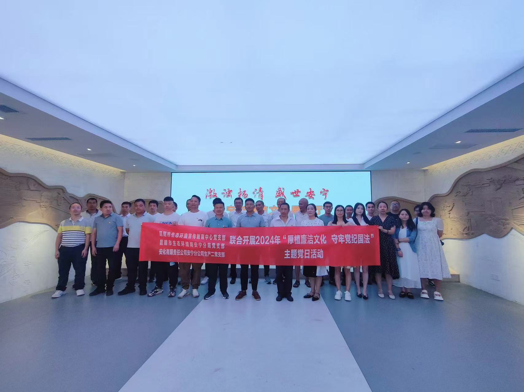 為進一步加強黨風廉政建設,提升支部黨員的廉潔自律意識,弘揚清正廉潔價值觀,2024年8月5日,云南安寧化工廠有限責任公司安寧分公司生產二黨支部與昆明市生態環境宣傳教育中心黨支部、昆明市生態環境局安寧分局黨支部聯合開展了“參觀廉潔文化展示廳 樹牢黨紀國法”主題黨日活動。